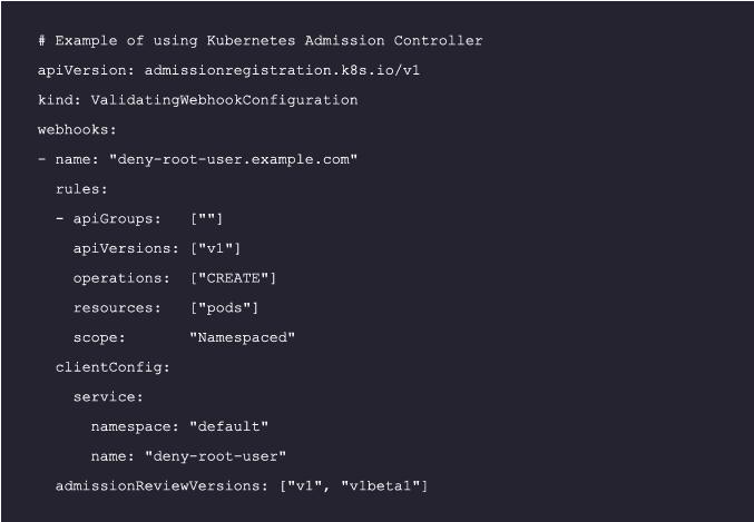 For More details, refer to the Kubernetes Admission Controllers Reference